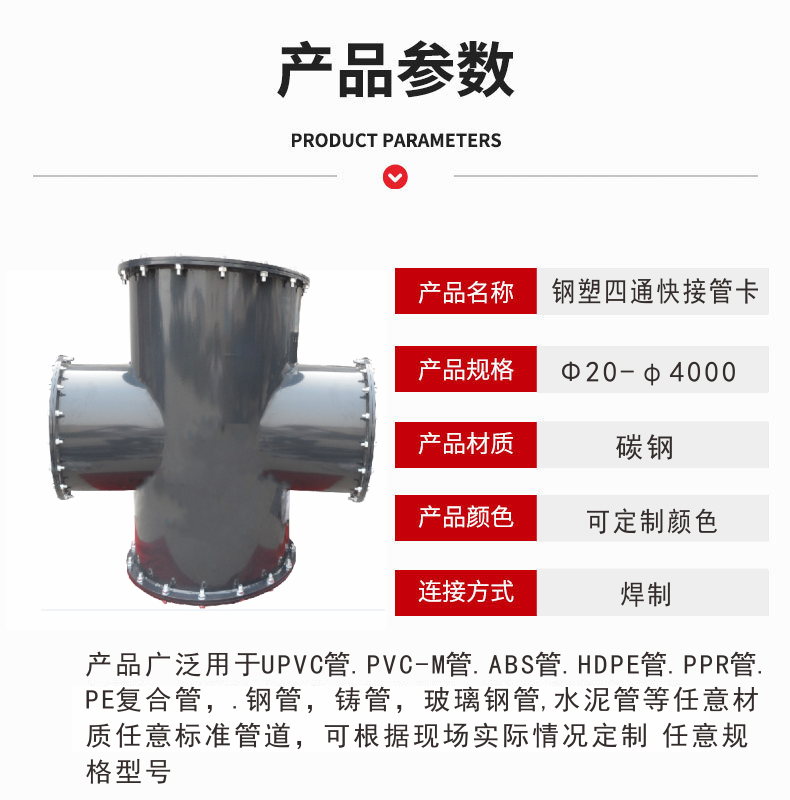 • 鋼塑四通伸縮接頭 鋼制四通管件 四通伸縮快接